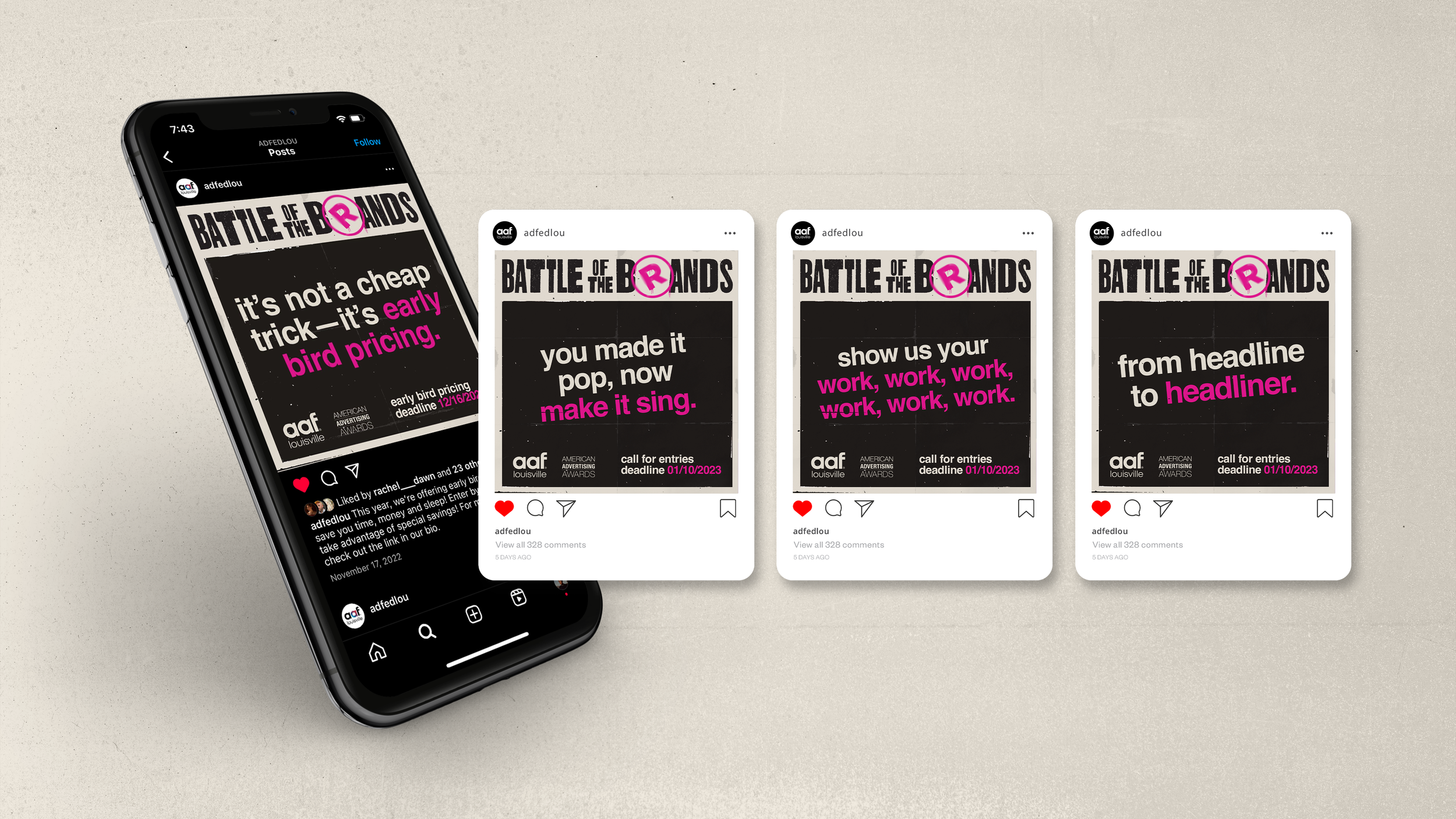 Every year, Ad Fed Louisville hosts an award show that celebrates local design and advertising efforts. For their 2023 show, they looked for a captivating theme and design system that would be memorable and distinct among the other AAF shows across the country.